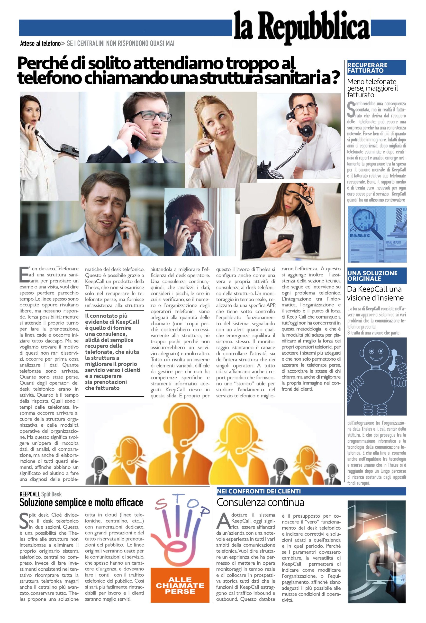 Theles nasce dalla conoscenza di tecnologie d’integrazione Computer/Telefono (CTI) che data, per alcune persone coinvolte, ad oltre 30 anni. Con tale know-how, ricerca e sviluppo di KeepCall sono partite da livelli molto alti.